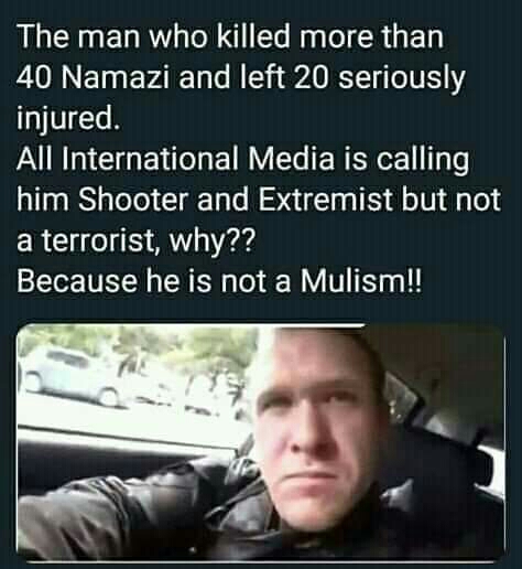 نیوزی لینڈ میں پچاس مسلمانوں کے خون سے ہولی کھیلنے والے دہشت گرد کو مغربی میڈیا نے نفسیاتی مریض قرار دے دیا ۔۔۔۔